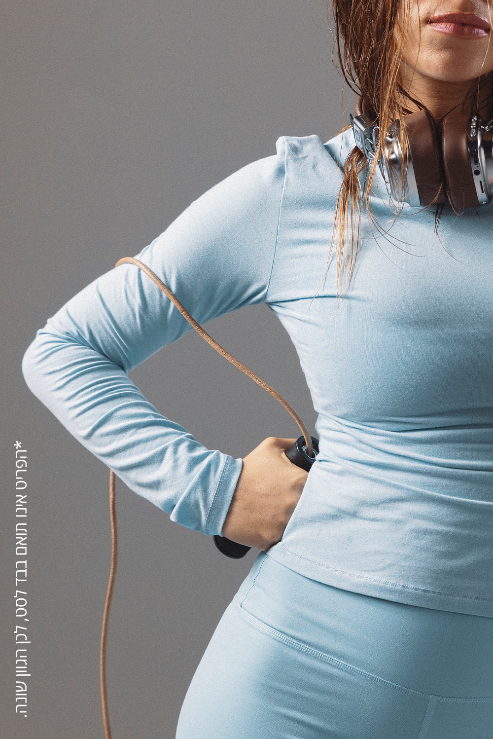 חולצת בייסיק מבד כותנה, שרוול ארוך, צווארון סגור, נעימה ובגוון תכלת