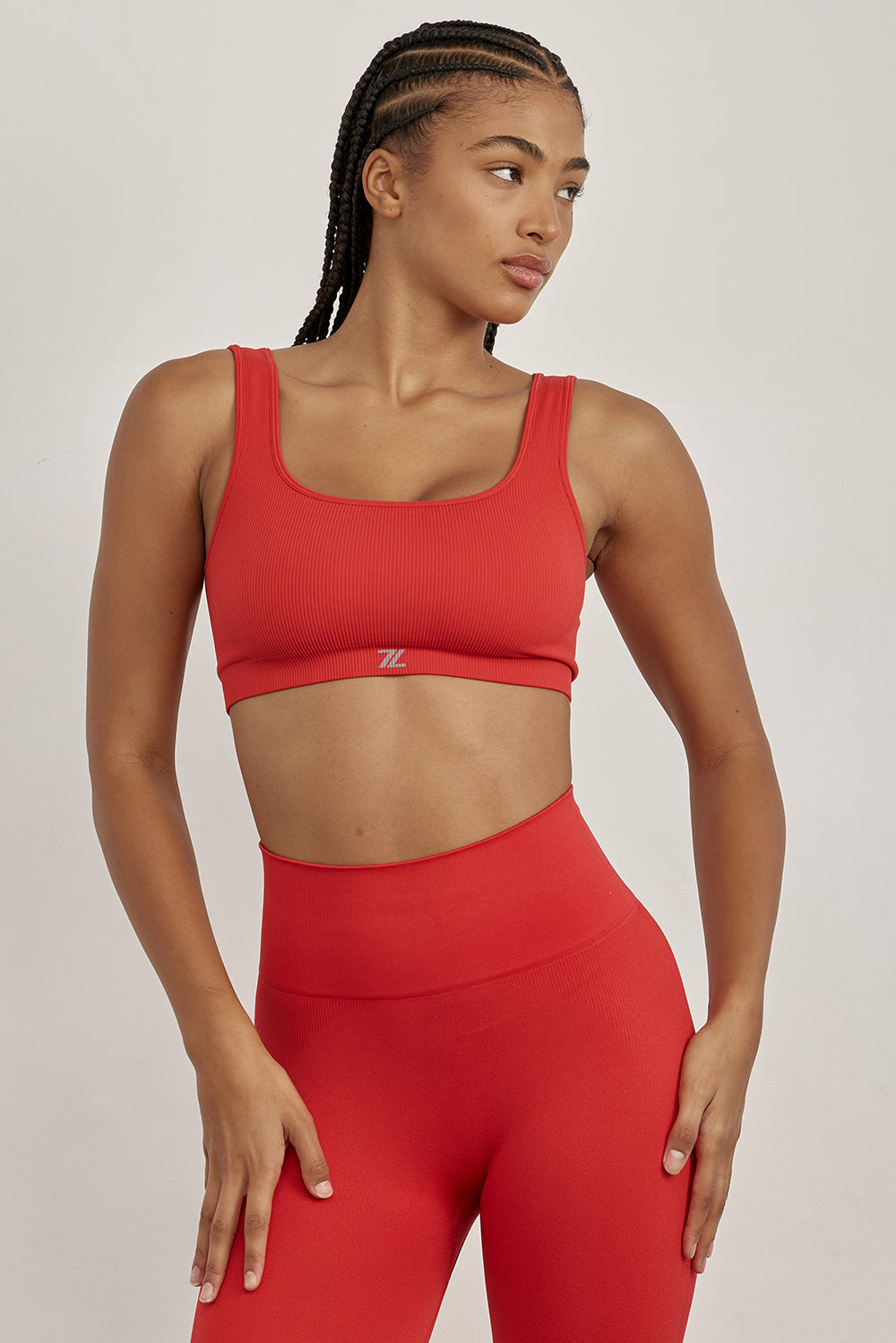 טופ מפסי ריב עדינים, ללא תפר.צווארון מרובע (בחלק הקדמי והאחורי).בד רך ומקצועי, הטופ ללא ריפוד וללא פתח להכנסת ריפוד.גוון אדום.לתשומת לבך: בעקבות הבדלים בין הבדים של הטופ והטייץ ייתכנו שינויים קלים בגוון.