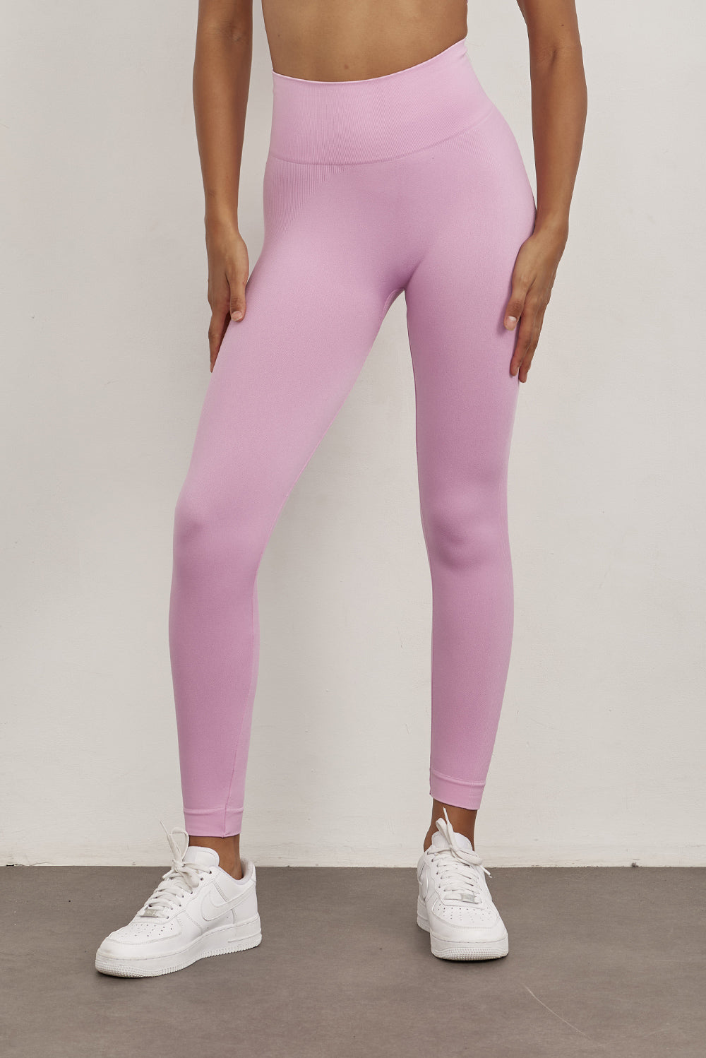 טייץ סקיני ארוך ללא תפר.גזרה גבוהה מאוד.בד מחטב. עיצוב פסי ריב לצדי הטייץ.גוון ורוד בהיר.בגוון זה מומלץ ללבוש תחתון ללא תפר, גוון בהיר ולכן עם פחות אטימות.לתשומת לבך: בעקבות הבדלים בין הבדים של הטופ והטייץ ייתכנו שינויים קלים בגוון.
