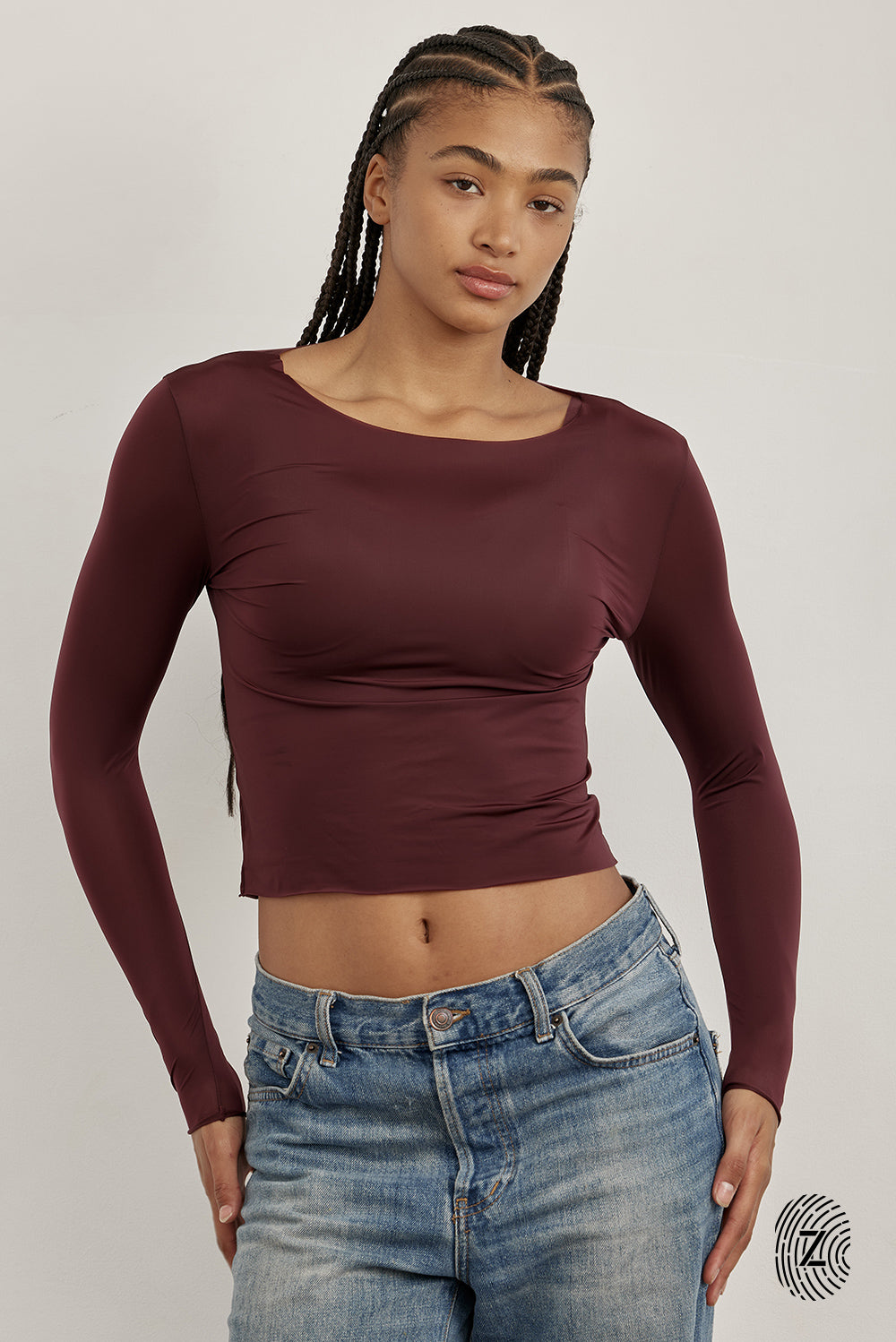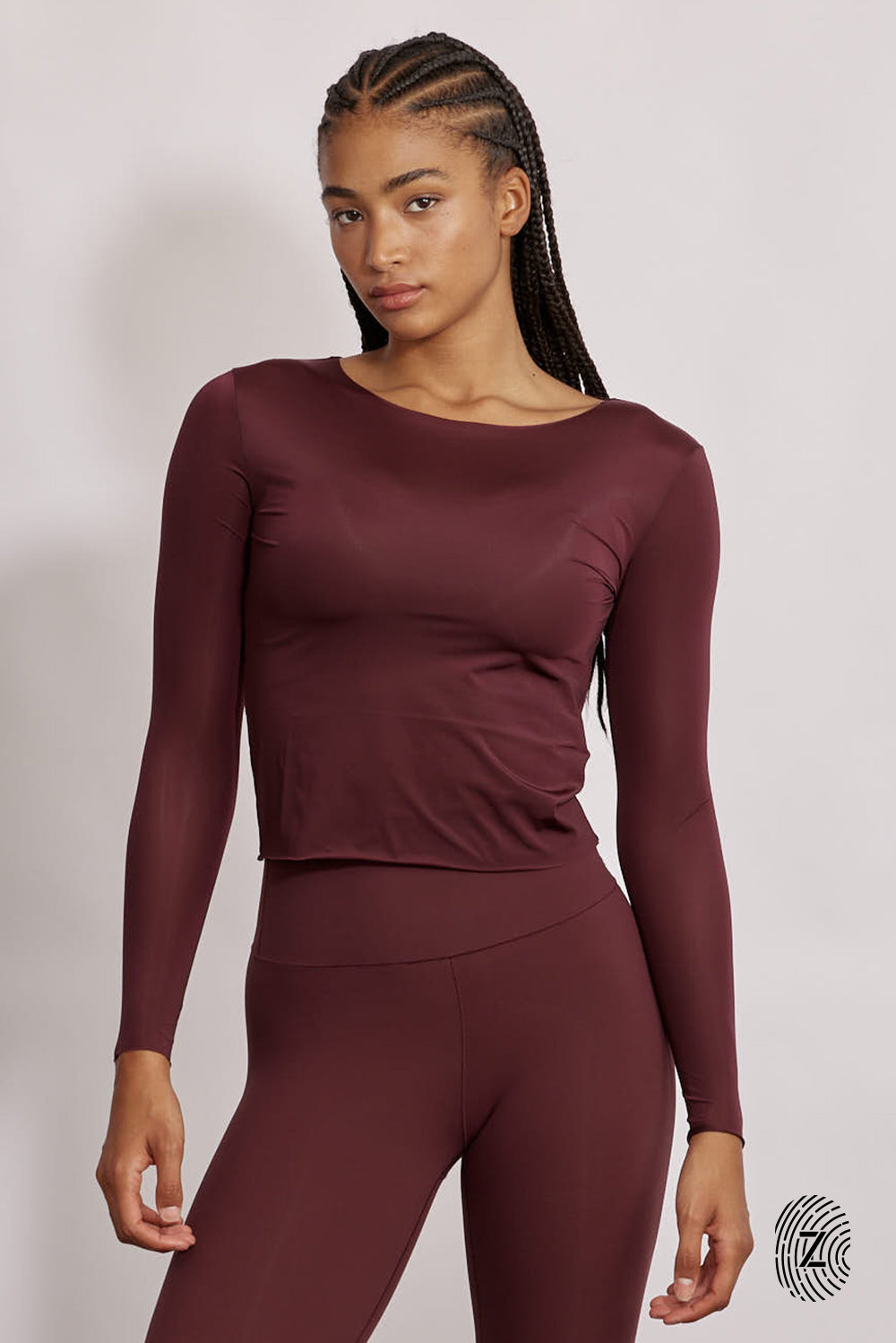 Touch 4 - Sheer Long Sleeve Shirt - בורדו